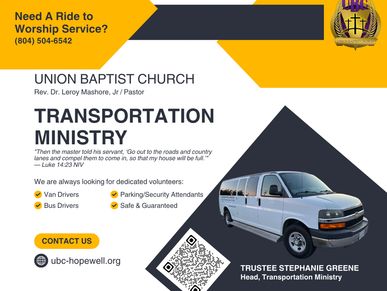 The Transportation Committee is dedicated to ensuring that all members of the congregation have access to transportation for church services and events. We coordinate rides for those who may need assistance getting to and from the church, helping to ensure that everyone can participate in the church community.